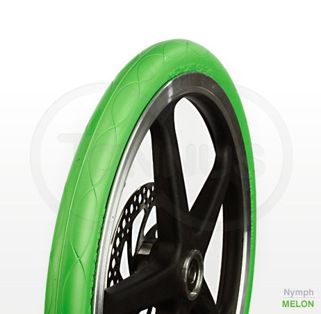 Made from a very special Micro Closed Cell Polymer Resin “Aither”, Tannus tire uses a foaming technology. And, it may look similar to that used in many lightweight sports shoes, but it is totally different from any other foaming technology both in terms of its process or the condition. It is made from the one-and-only material “Aithercompound” with a very unique foaming process.